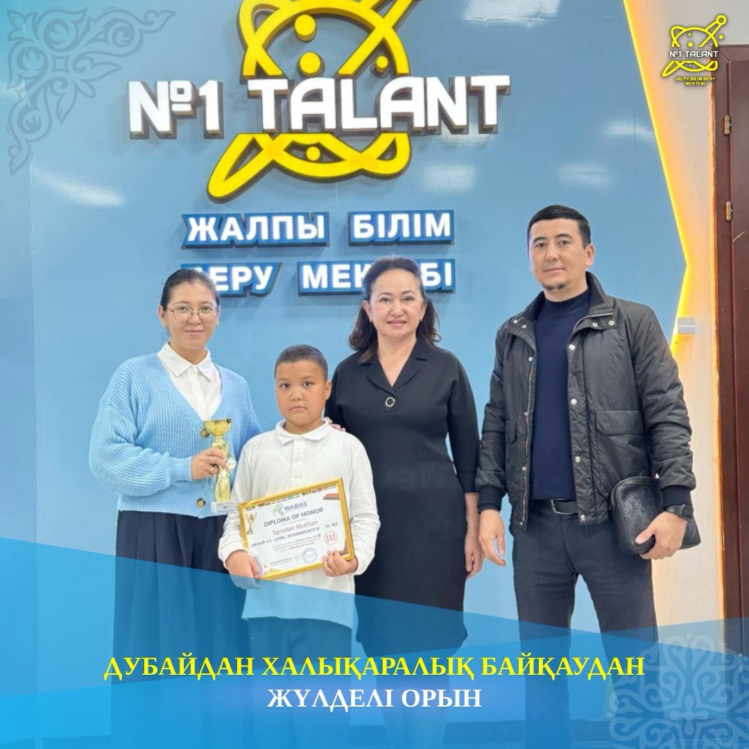 Дубай қаласында өткен халықаралық менталды арифметика олимпиадасында Шымкент қаласындағы №1 «Talant» жалпы білім беру мектебінің 4 «Ә» сынып оқушысы Мұхан Тамирлан ерекше нәтижесімен көзге түсті.